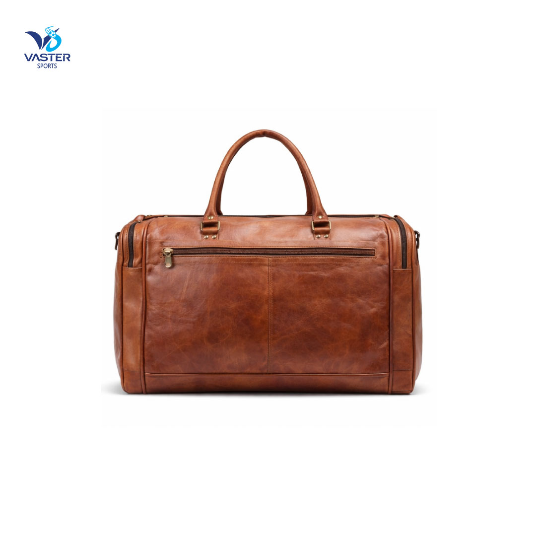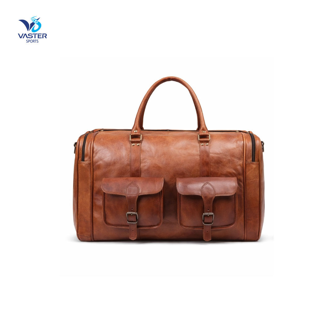 The customized personalized leather duffle bag is stylish, sturdy, and practical all in one. Constructed of high-quality leather, it has interior pockets for orderly storage as well as a large main area. Carrying is made easy by comfy grips and an adjustable shoulder strap. With embroidery or engraving, customization with your name, initials, or team logos is available. For personal use, gifts, or private label branding, this duffle bag offers expert appearance and dependable performance.